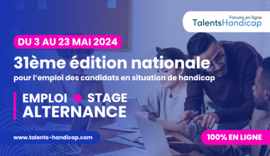 Voir plus 31ème édition nationale des forums en ligne Talents Handicap, du 3 au 23 mai 2024 La 31ème édition nationale des forums en ligne Talents Handicap se tiendra du 3 au 23 mai 2024.…